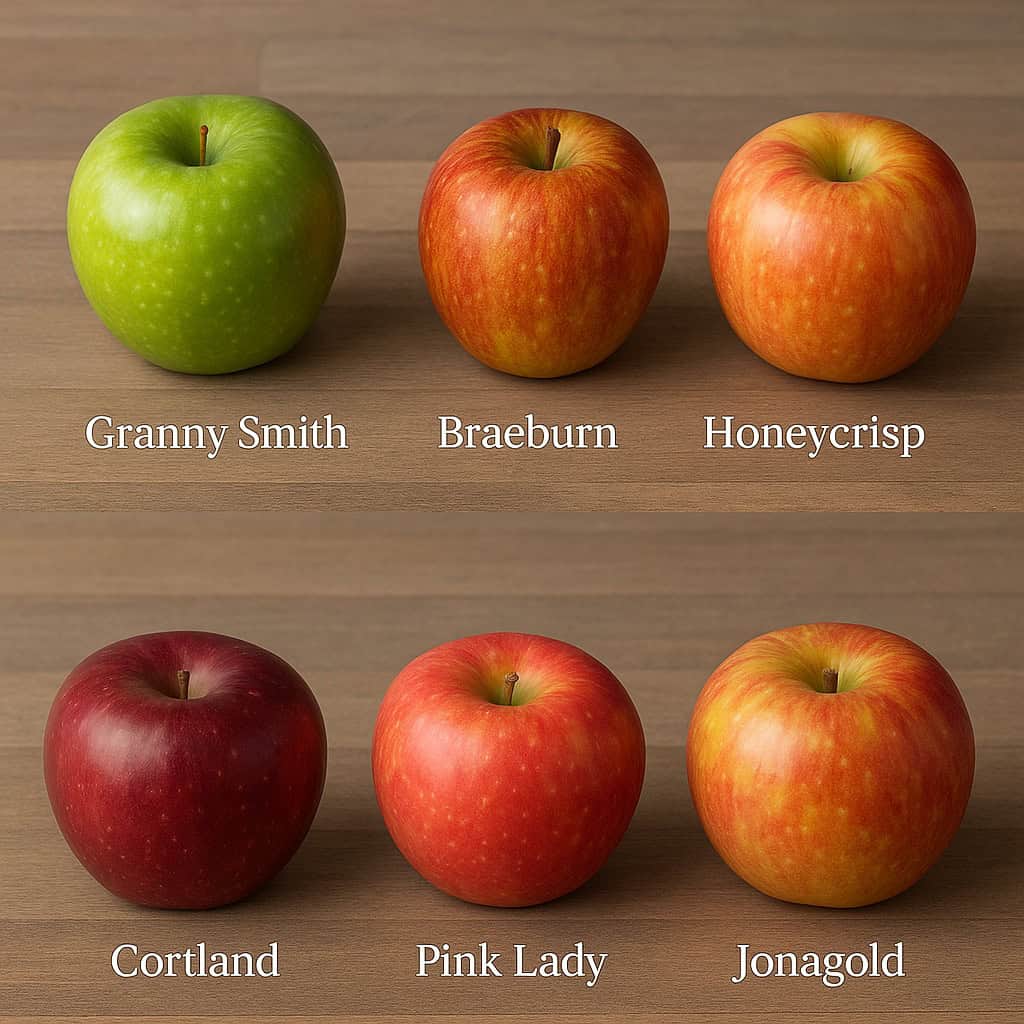 1. Granny Smith — Tart, crisp, and holds its shape under heat. Best for classic apple pies and crumbles.