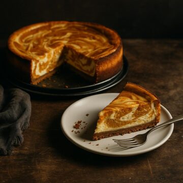 This isn’t a dessert for polite restraint. The crust cracks, the filling leaks a little, and the swirl looks more like storm clouds than Instagram perfection. That’s the point. Food that’s too perfect is lifeless. This cheesecake carries fingerprints of the cook — raw, honest, a little messy — the way it should be.