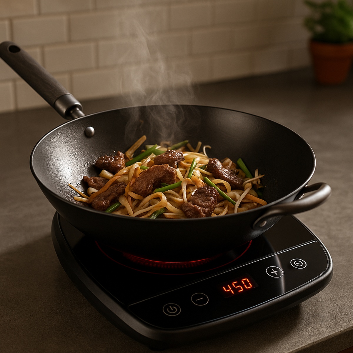 Wok cooking has long been ruled by the power of open flame, but induction is rewriting the rules. Instead of heating around your pan, it heats through it — using magnetic fields to excite the metal itself.